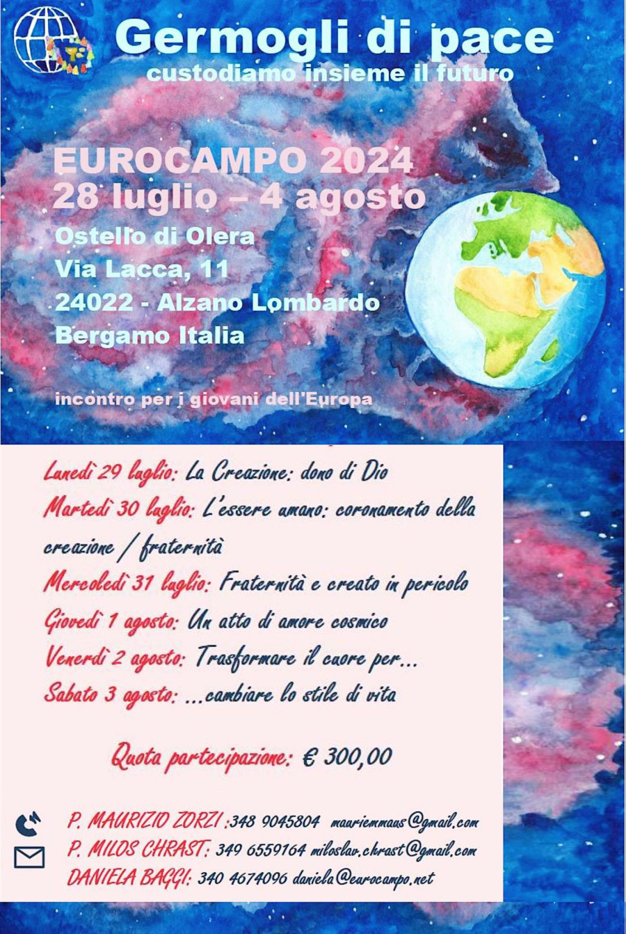 Avec ce souhait, conscients que chacun de nous est appelé à protéger et à donner un avenir à la Création, nous vous demandons à nouveau de promouvoir l'Eurocamp, une expérience de vie eucharistique avec des jeunes d'Europe, en en parlant et en invitant les jeunes que vous connaissez à y participer. Mais nous vous demandons aussi de nous accompagner par l'amitié et la prière.